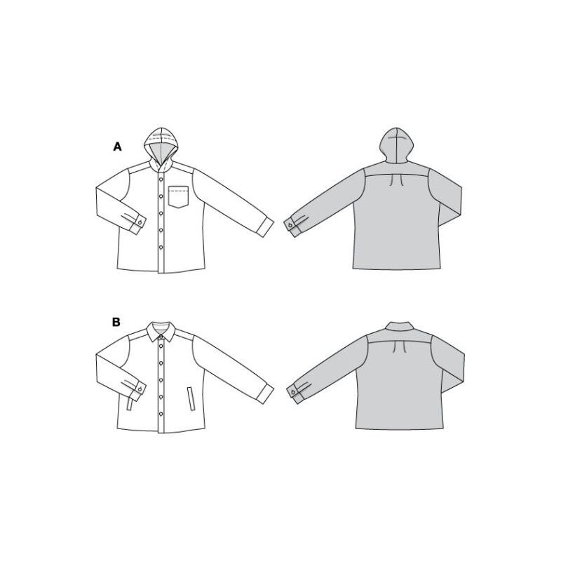 Strih Burda zelený 5768 - pánska košeľová bunda s kapucňou, vrchná košeľa je súbor jednoduchých strihov na ušitie pánskej košeľovej bundy a vrchnej košele.
