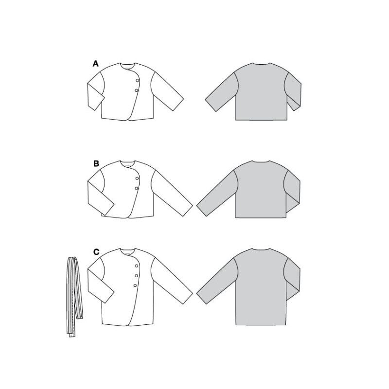 Strih Burda zelený 5770 - sako, plyšový kabátik, krátky kabátik je súbor jednoduchých strihov na ušitie dámskeho saka, plyšového kabátika a krátkeho kabátika.