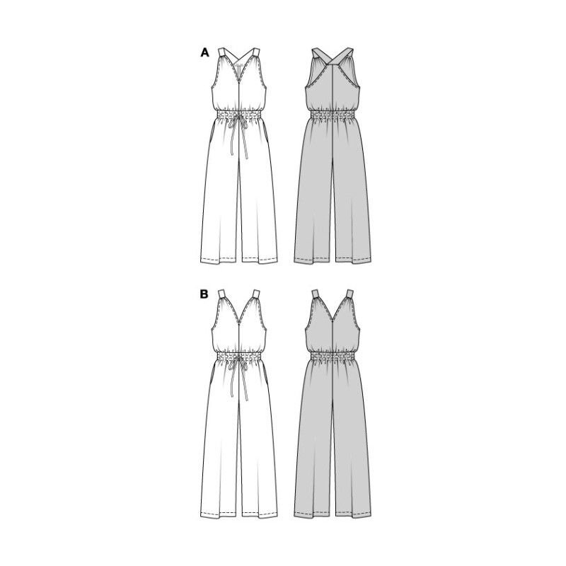 Strih Burda zelený 5817 - overal so skríženými ramienkami, nohavicové šaty je súbor jednoduchých strihov na ušitie dámskeho overalu so skríženými ramienkami.