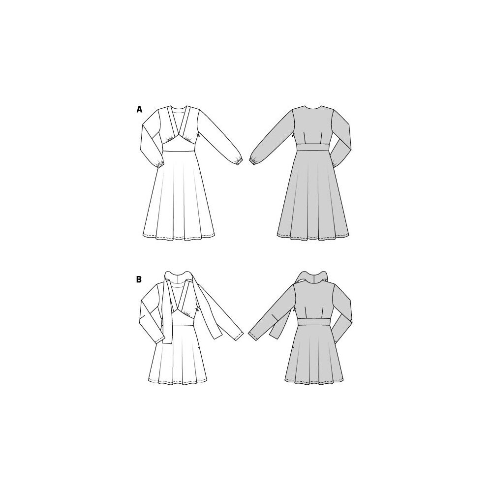 Strih Burda zelený 5885 - šaty s rozšírenou sukňou je súbor jednoduchých strihov na ušitie dámskych šiat s rozšírenou sukňou.