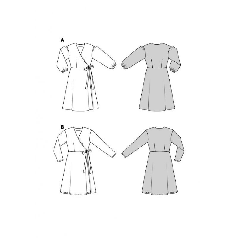 Strih Burda zelený 5933 - zavinovacie šaty je súbor jednoduchých strihov na ušitie dámskych zavinovacích šiat.