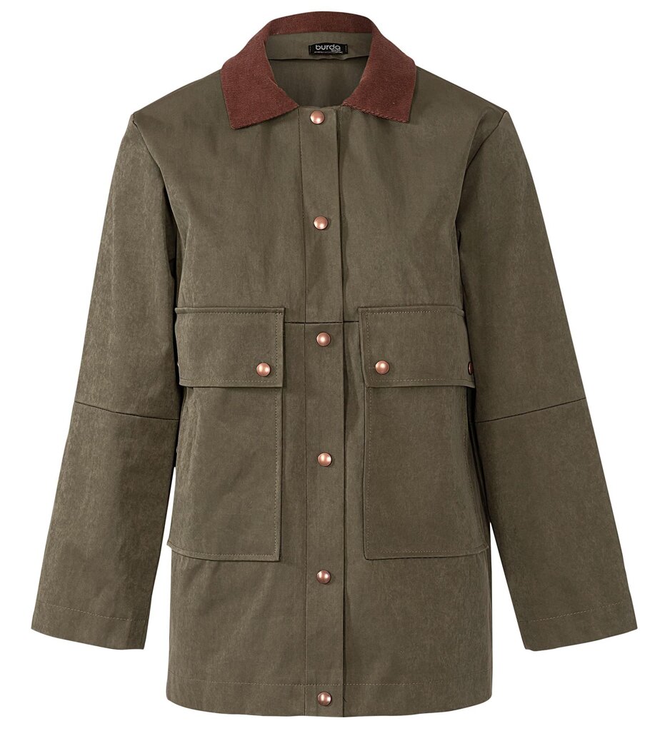 Strih Burda zelený 5941 - bunda, dlhá bunda, menčestrová bunda, je súbor strihov na ušitie dámskej bundy. Strihy sú vytlačené na kvalitnom kriedovom papieri.