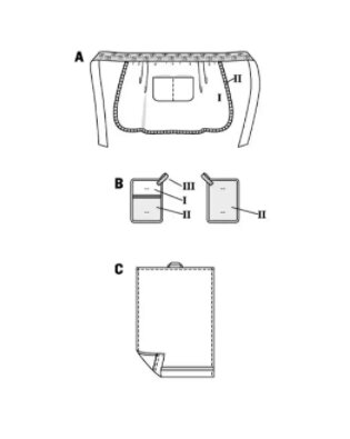 Strih Burda zelený 5994 - zástera, chňapka, utierka obsahuje strih na ušitie zástery, utierky a chňapky do kuchyne.