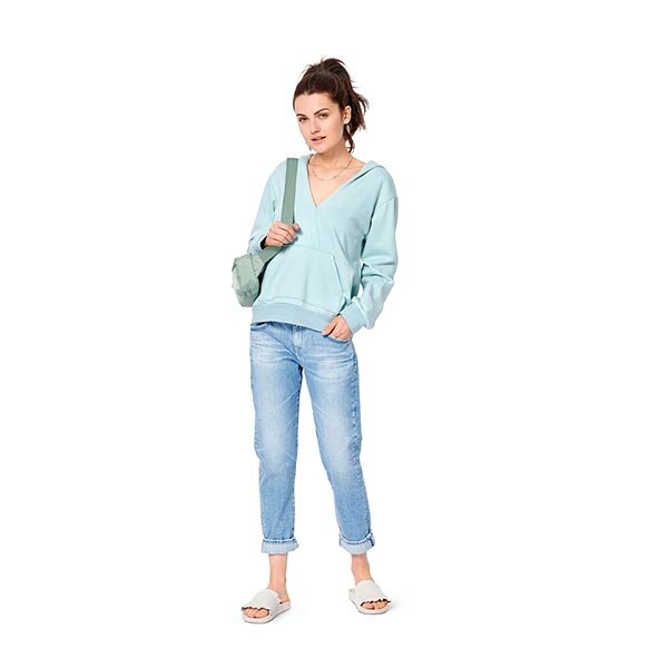 Strih Burda zelený 6012 - mikinové šaty, mikina s kapucňou je súbor niekoľkých strihov na ušitie dámskych mikinových šiat a mikiny. Strihy sú vytlačené na kvalitnom kriedovom papieri.