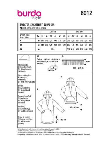 obchod@raj-sitia.skStrih Burda zelený 6012 - mikinové šaty, mikina s kapucňou je súbor strihov na ušitie dámskych šiat alebo mikiny. Strihy sú vytlačené na kvalitnom kriedovom papieri. Súbor obsahuje strihy na ušitie dámskych mikinových šiat a miki vo väčších veľkostiach. Vďaka jednoduchému strihu, podľa ktorého zvládnu šiť aj začiatočníci, získate originálne modely pre Váš šatník. Aj ženy plných tvarov sa môžu cítiť pohodlne a elegantne, buďte cool.