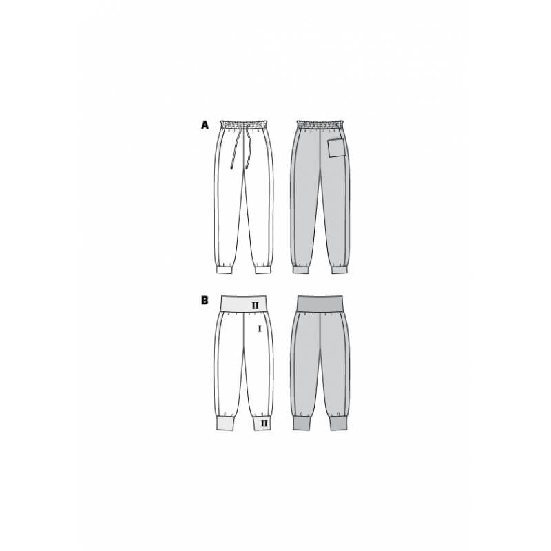 Strih Burda zelený 6317 - dámske tepláky, teplákové nohaviceje súbor jednoduchých strihov na dámske tepláky a teplákové nohavice