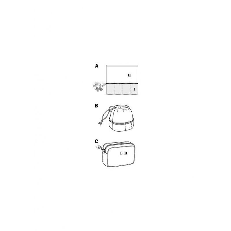 Strih Burda zelený 9276 - kozmetická taštička, taštička na makeup je súbor jednoduchých strihov na ušitie praktickej tašky na kozmetiku a make-up.