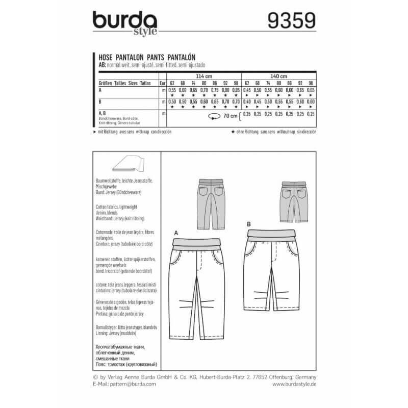 obchod@raj-sitia.skStrih Burda zelený 9359 - detské džínsové nohavice, trojštvrťové nohavice