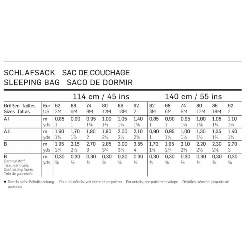 Strih Burda zelený 9382 - detský spací vak obsahuje strih na ušitie detského spacieho vaku.