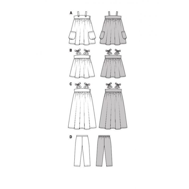 Strih Burda zelený 9437 - detské šaty, dlhé letné šaty, nohavice je súbor jednoduchých strihov na ušitie detských letných šiat a nohavíc.