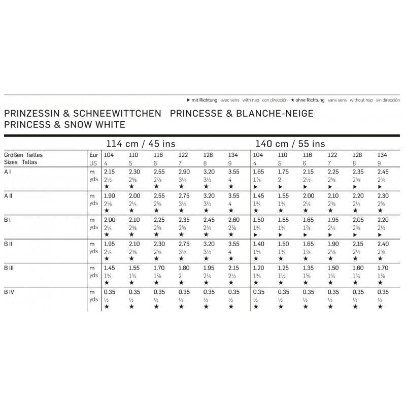 Strih vo veľkostiach: EUR 104-1134
