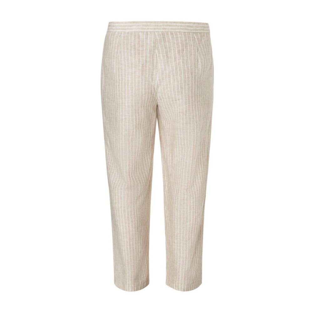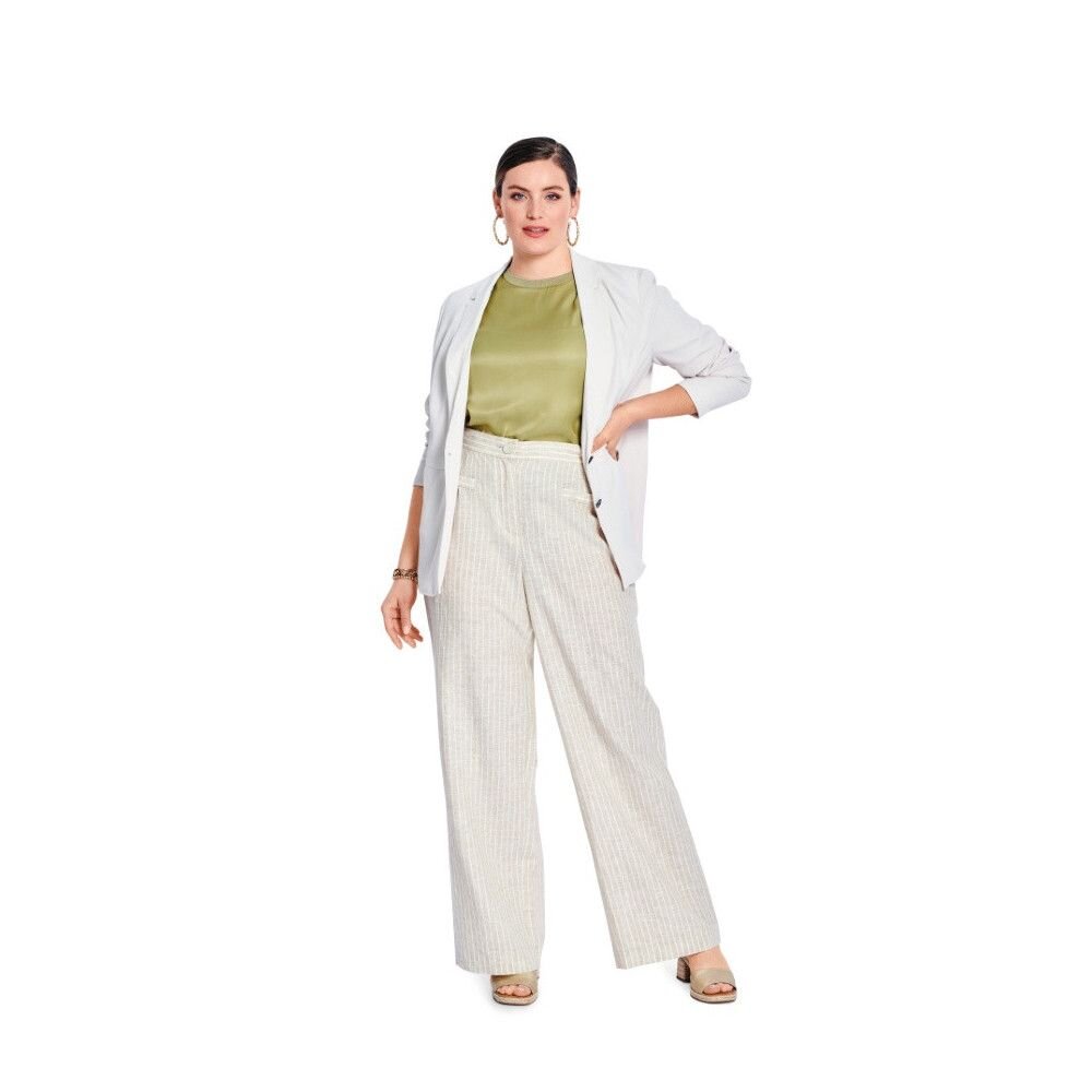 Strih Burda žltý 5735 - nohavice s rovnými nohavicami, ľanové nohavice, riflové nohavice, mom jeans je súbor jednoduchých strihov na ušitie pohodlných nohavíc.