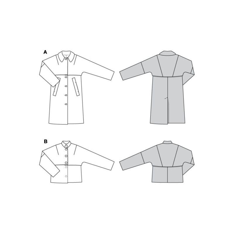 Strih Burda žltý 5769 - dlhý kabát, trenčkot, krátky kabát je súbor jednoduchých strihov na ušitie dámskeho kabátu a trenčkotu.