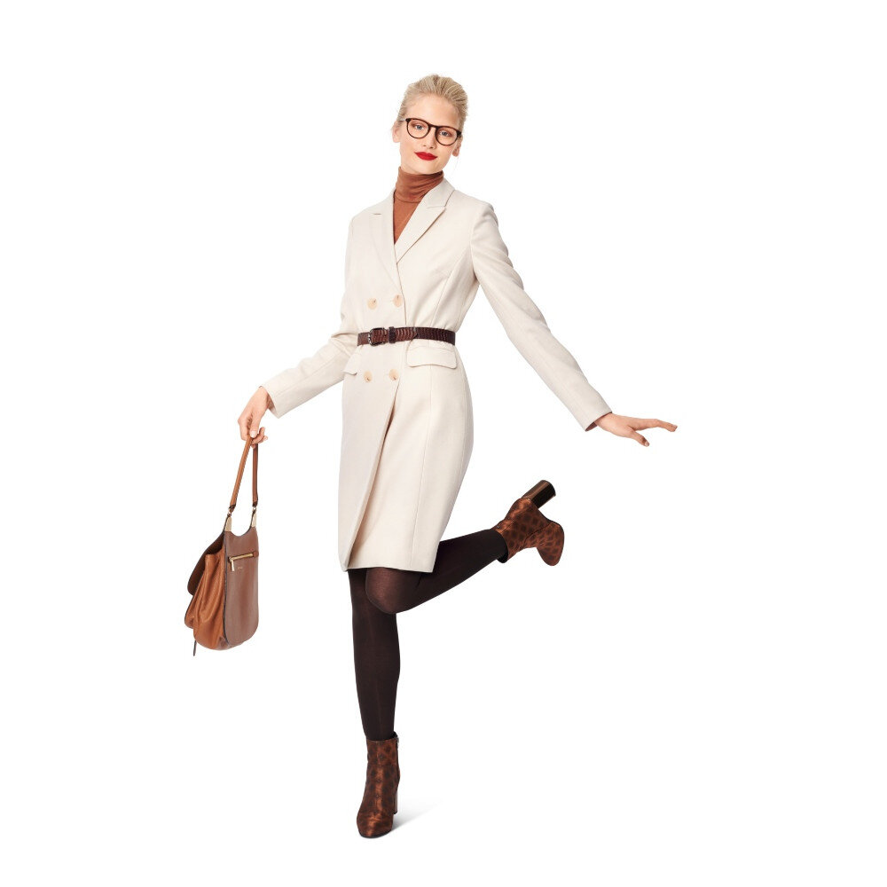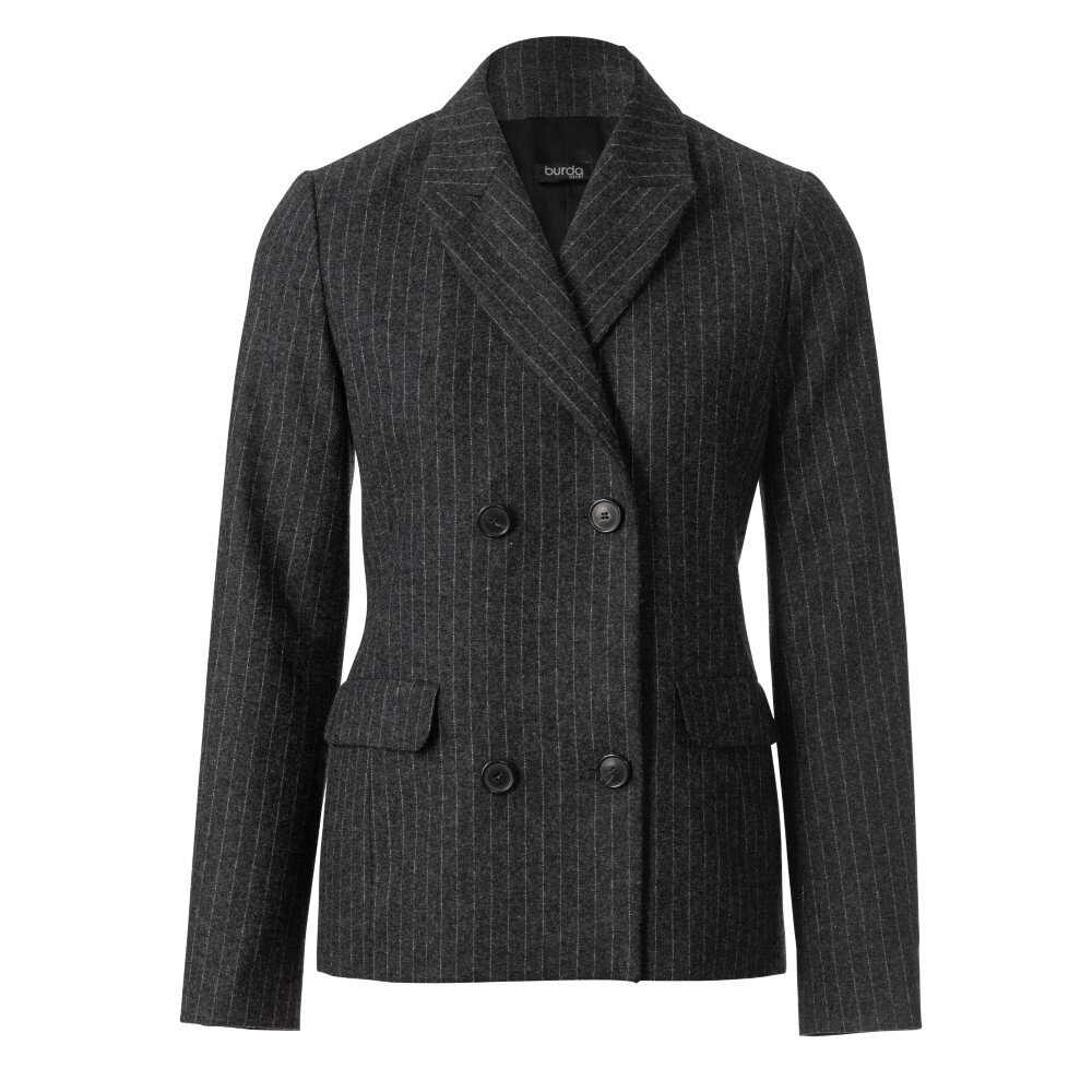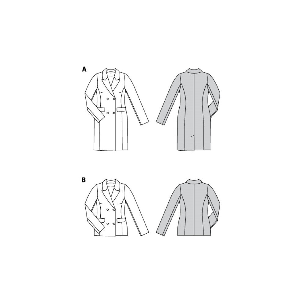 Strih Burda žltý 6078 - sakové šaty, dlhé sako, dvojradové sako je súbor jednoduchých strihov na ušitie štýlového dámskeho saka na tri spôsoby.