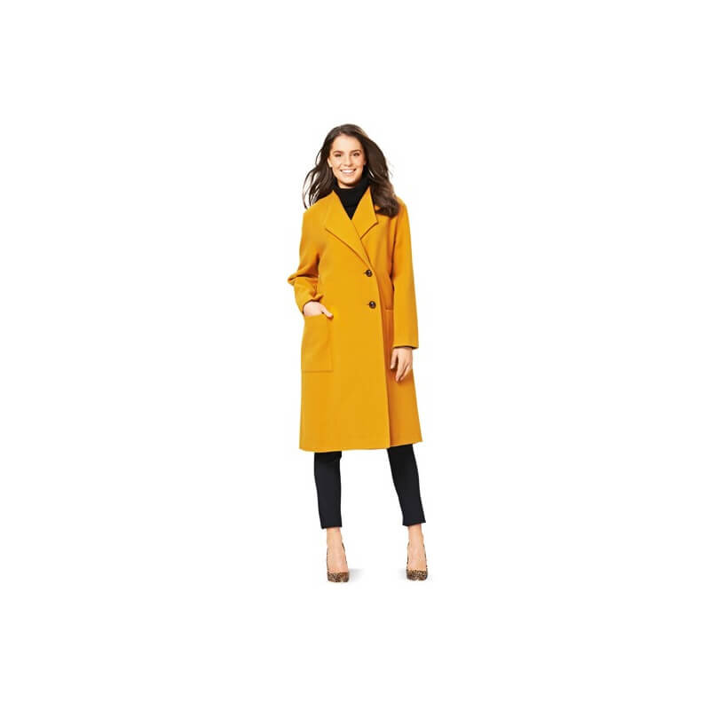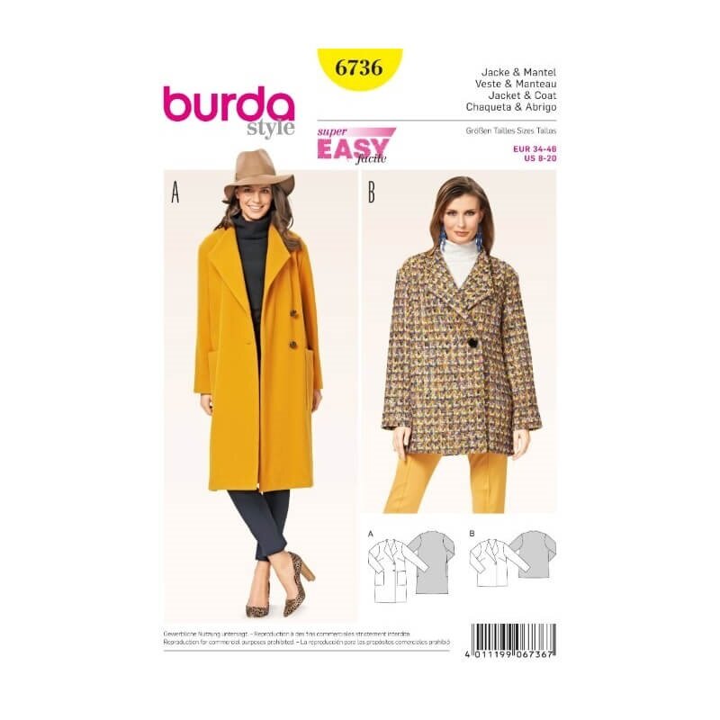Strih Burda žltý 6736 - dámsky kabát, krátky kabát je súbor jednoduchých, elegantných strihov pre dámsky kabát, krátky dámsky kabát