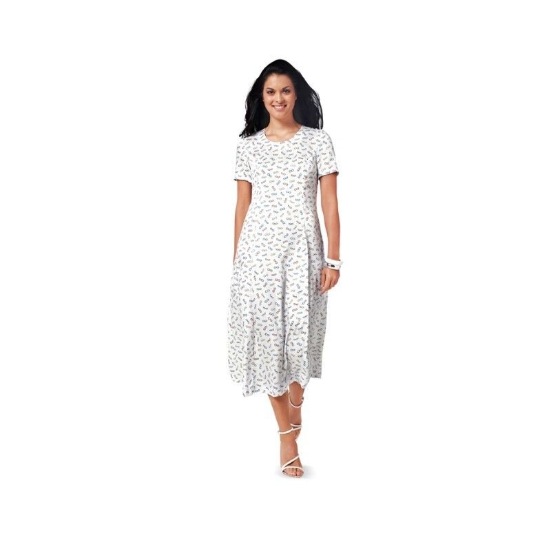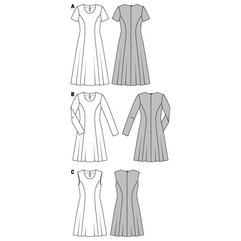 Strih Burda žltý 6821 - áčkové letné šaty, midi šaty je súbor jednoduchých strihov na ušitie letných šiat.