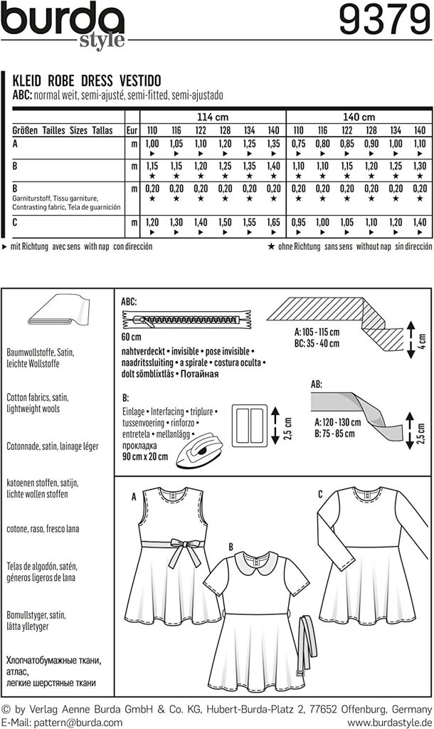 obchod@raj-sitia.skStrih Burda žltý 9379 - detské šaty s kolesovou sukňou je súbor strihov na ušitie dievčenských šiat s krásnou kolesovou sukňou. Strihy sú vytlačené na kvalitnom kriedovom papieri. Súbor obsahuje strihy na ušitie detských šiat. Vďaka jednoduchému strihu, podľa ktorého zvládnu šiť aj začiatočníci, získate originálne modely pre detský šatník. Ušite svojim deťom pohodlné a slušivé oblečenie na jarné či letné dni alebo na slávnostné udalosti.