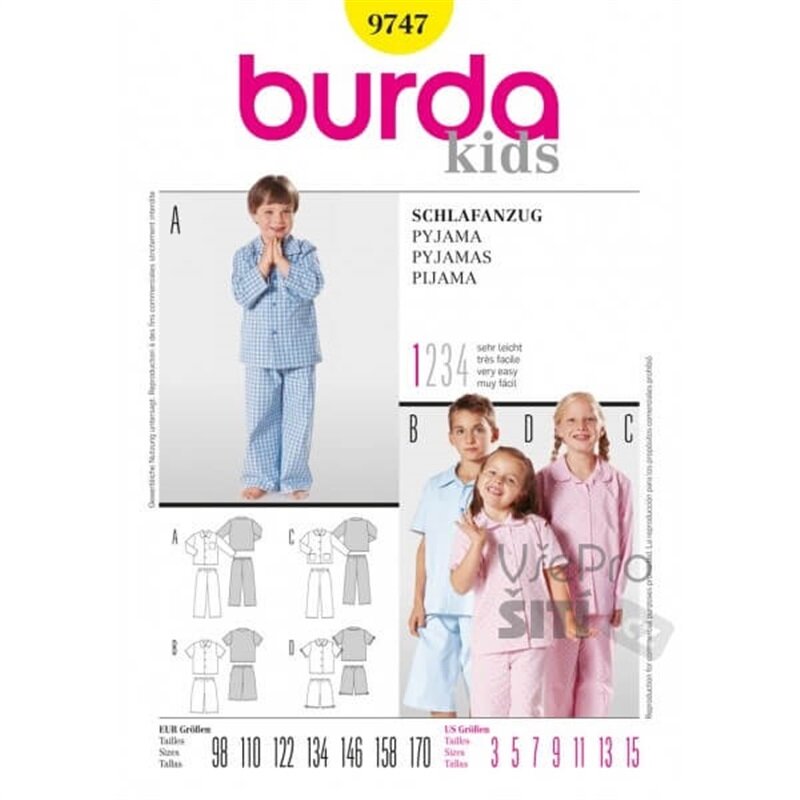 obchod@raj-sitia.skStrih Burda žltý 9747 - detské unisex pyžamo je súbor strihov pre ušitie detského unisex pyžamá.