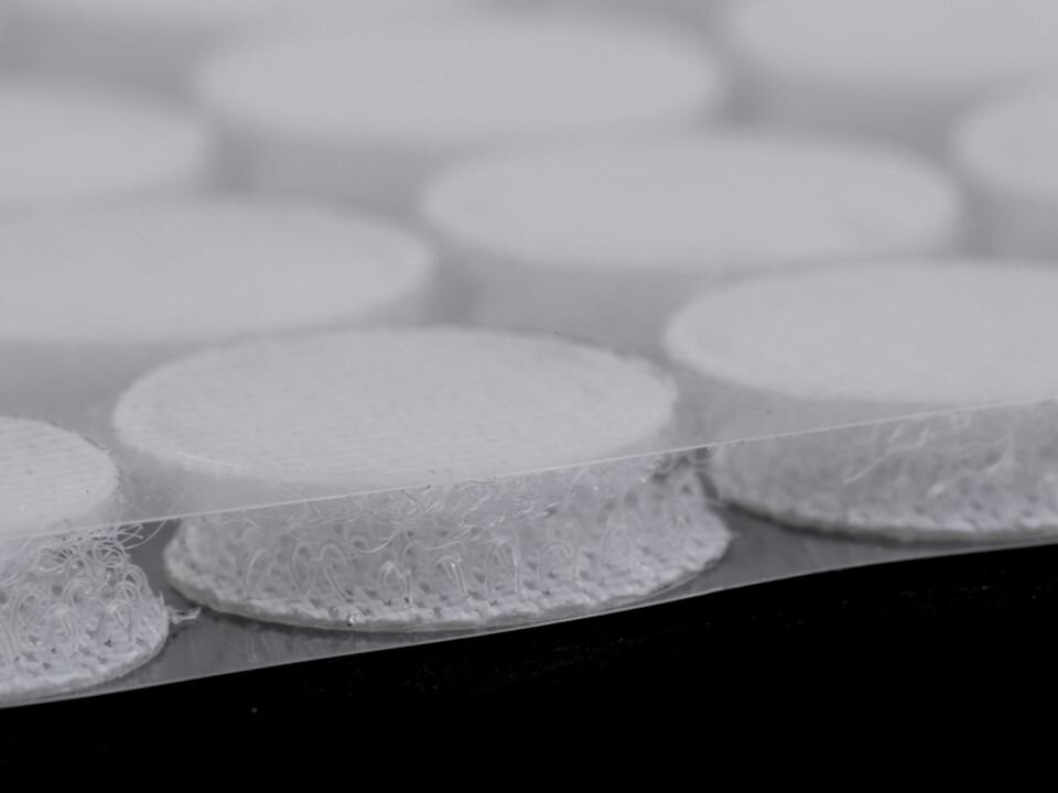 Samolepící suchý zip ve tvaru kruhu o průměru 15 mm. Používá se k připevnění reklamy, nápisů, obrázků apod.