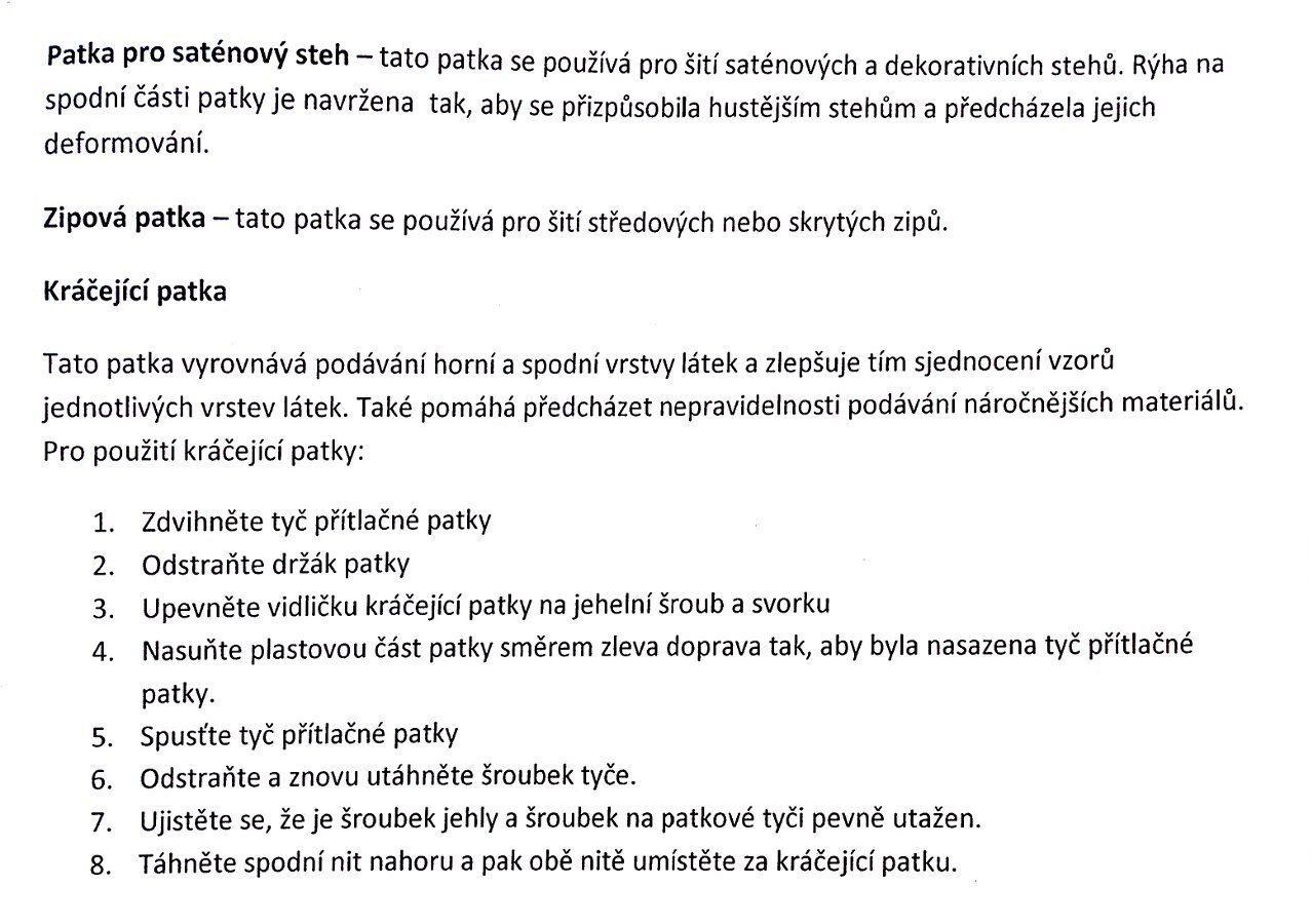 Pri šijacích strojoch so šírkou stehu do 7 mm, napr. 888 Izabella II, 2040 Karolina, 2070 Malwina, 2020 Balladyna, 2050 Magdalena, 2060 Helena možno s touto pätkou šiť iba do šírky stehu 5 mm, aby nedošlo k zlomeniu ihly.