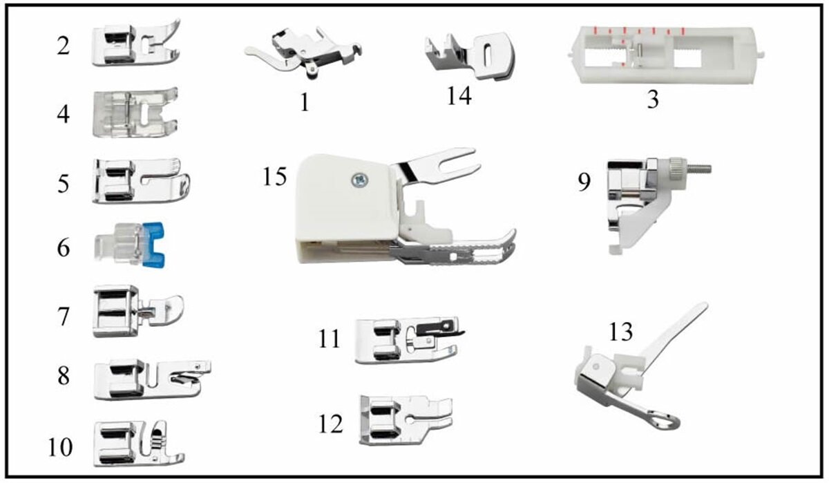 Súprava 15 ks pätiek je praktická sada 15 ks najpoužívanejších pätiek značky Lucznik. Pätky sú vhodné pre šijacie stroje Lucznik nového modelového radu, vyrobené po roku 2006.