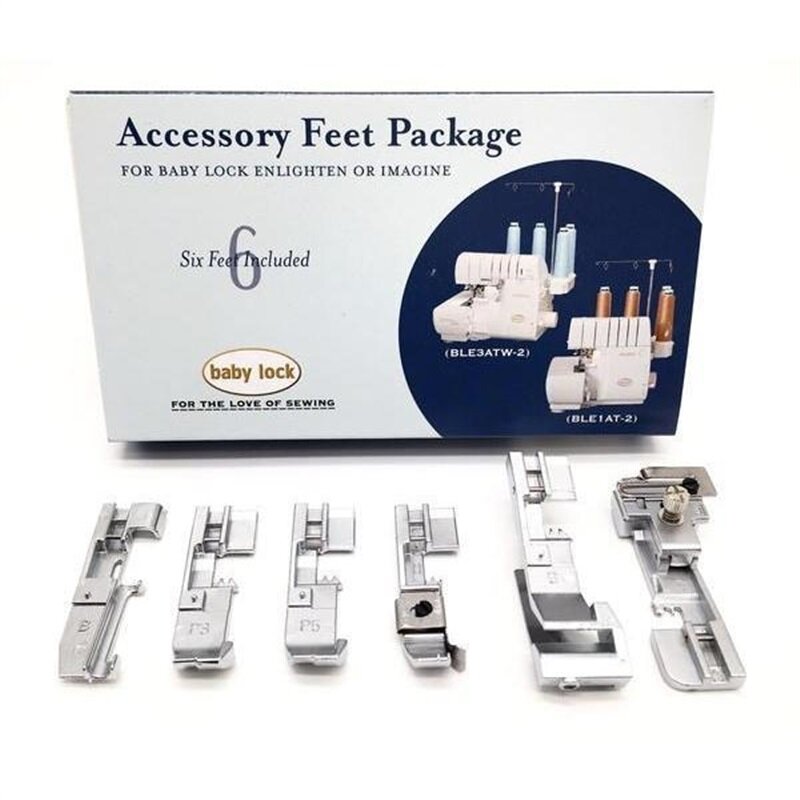 Sada 6-tich pätiek - overlocky Baby Lock je sada 6 ks pätiek na dokúpenie pre overlocky Baby Lock. Pätky umožňujú využiť všetky možnosti, ktoré tieto overlocky ponúkajú.