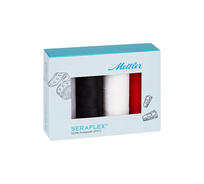 Súprava elastických nití SERAFLEX od značky Mettler. Skvelá niť na dokonale elastické švy. Materiál PPT umožňuje predĺženie až o 65%. Súprava obsahuje 4 kusy nití SERAFLEX.