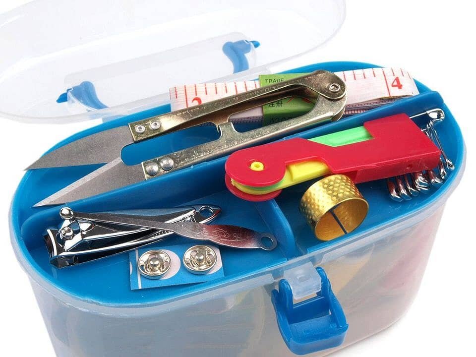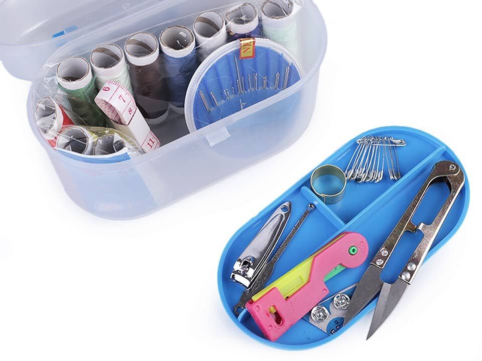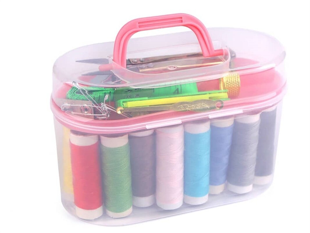 Súprava na šitie uložená v praktickom plastovom boxe ružovej farby. Táto sada obsahuje bohaté vybavenie. Jednoducho v nej nájdete všetko potrebné na ručné šitie aj rýchlu úpravu odevov.