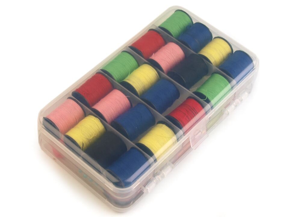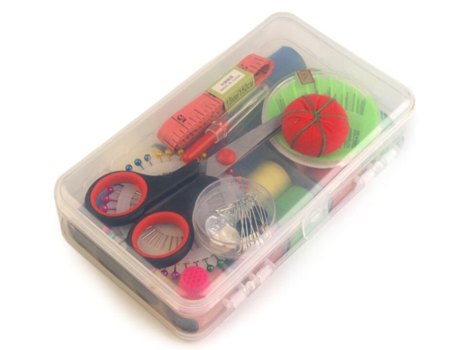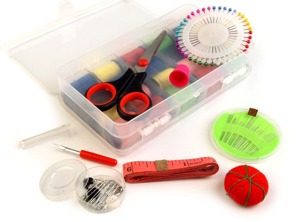 Súprava na šitie v boxe je praktická šijacia súprava v plastovej krabičke, ktorá obsahuje farebné nite, nožnice, špendlíky, ihelníček, meter, parač, spínacie špendlíky a ďalšie praktické pomôcky na šitie.