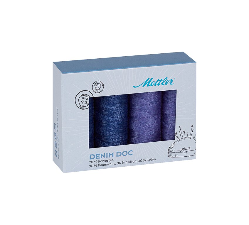 Súprava šijacích nití DENIM DOC od značky Mettler. Dokonalé šitie rifľoviny so silnou niťou v denimových farbách. Súprava obsahuje 4 kusy nití DENIM DOC.