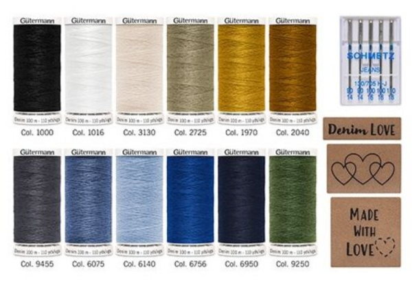 Krásna sada jeansových šijacích nití v univerzálnych farbách od značky Gütermann. Sada obsahuje 12 kusov nití v návine 100 m určených na šitie denimu. Nite sú balené v krásnej plechovej krabičke s vekom. Súprava obsahuje tiež 1 balenie strojných ihiel a štýlové nášivky. Súprava je veľmi praktická a využitie nájde v každej domácnosti.