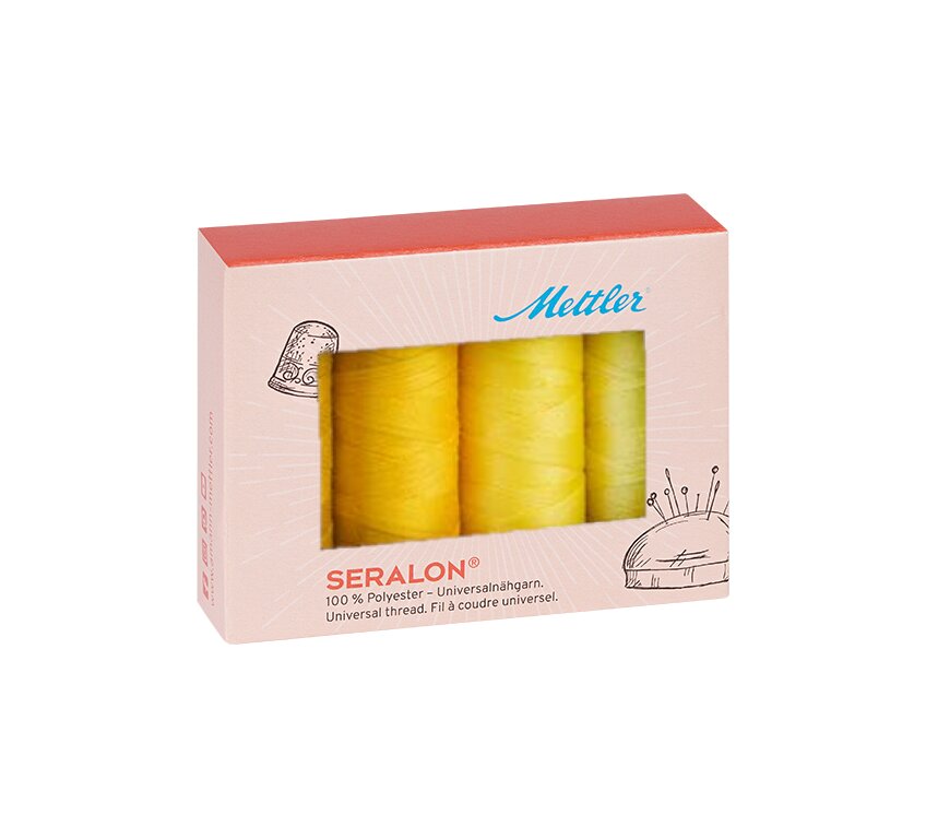 Súprava polyesterových nití SELARON od značky Mettler. Mimoriadne kvalitné univerzálne nite pre strojové aj ručné šitie. Súprava obsahuje 4 kusy nití SERALON, ktoré využije každá domácnosť.
