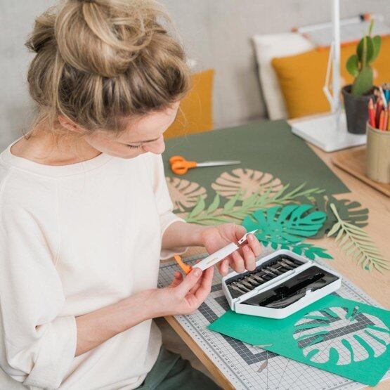 Súprava umeleckého noža a 12 tich čepelí v prehľadnom a praktickom puzdre od značky Fiskars. Skvelá voľba pre ľahké tvorenie.