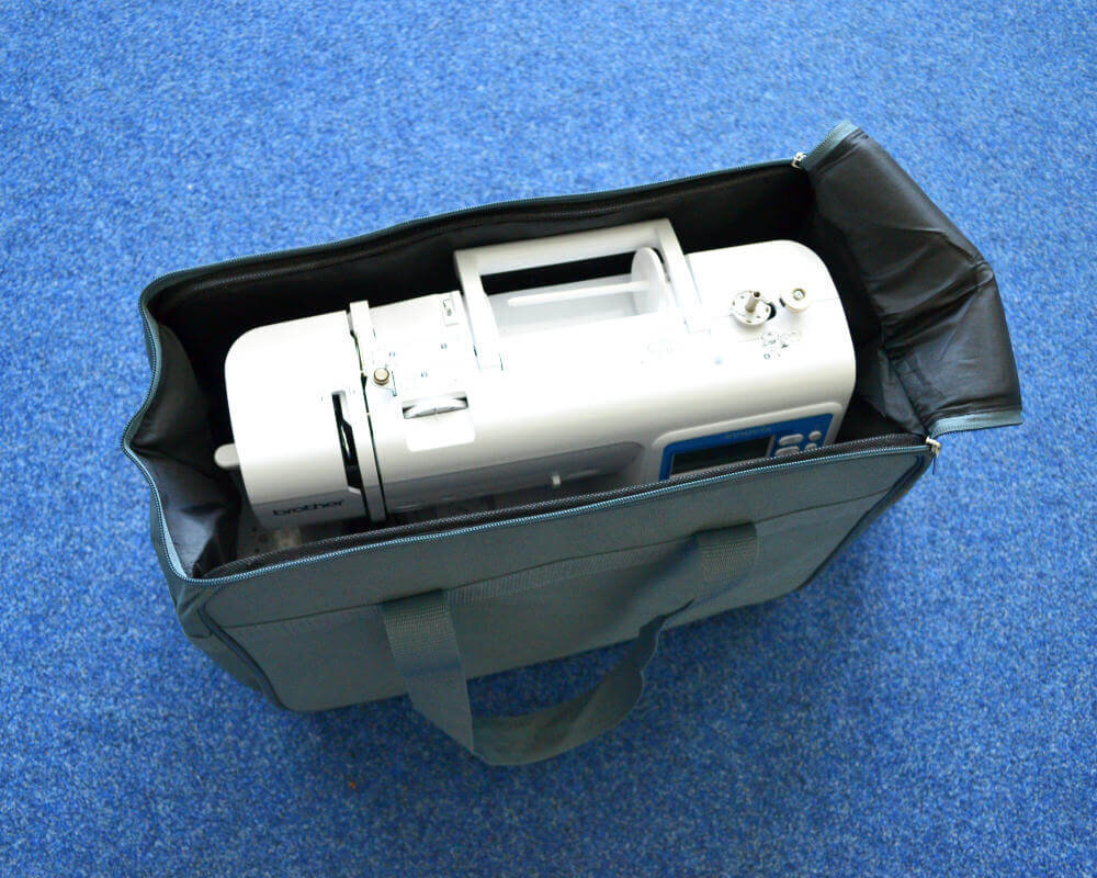 Taška na šijací stroj Brother - šedá je určená na bezpečné prenášanie a uloženie šijacieho stroja. Chráni stroj proti prachu. Farba šedá s logom Brother.