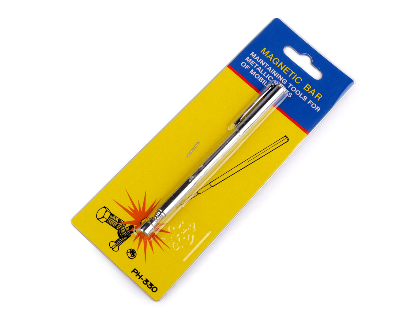 Teleskopický magnet je skvelý pomocník na vyťahovanie špendlíkov a ihiel s ťažko prístupný miest. Malý a skladný magnet na teleskopickej tyči.