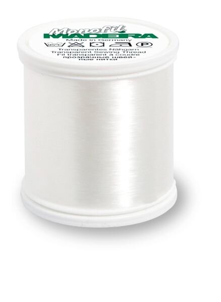 Transparentná šijacia niť Monofil č. 60 (1 000 m) číra - Madeira je transparentná tenká nylonová niť určená na šitie, kde niť nemá ísť vidieť, napr. prišitie pútok, ozdobných šnúrok a ďalšie. V návine 1000 m, farba číra.