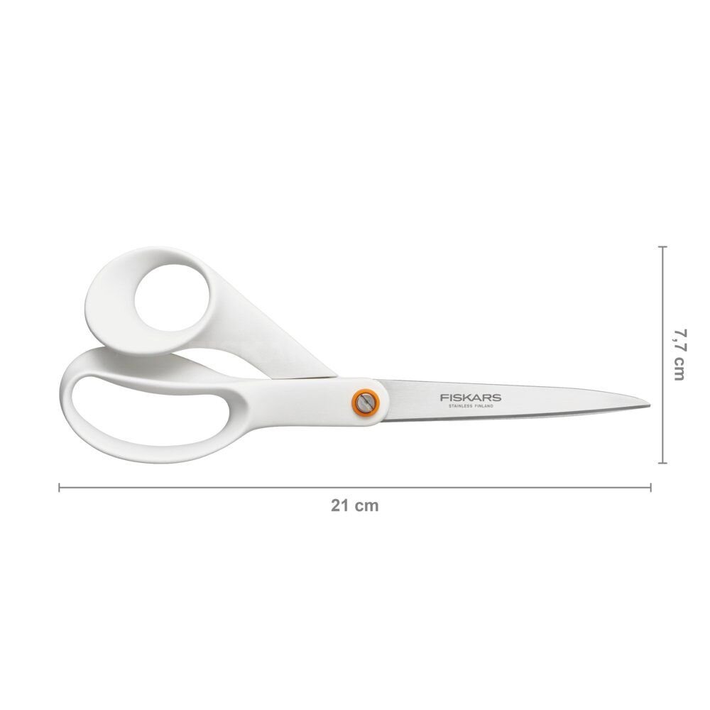 Nožnice Fiskars Functional Form sú ideálne na rôzne práce doma, v šijacej dielni, v škole, v kancelárii. Nožnice zvládnu odstrihnúť tenké aj silné materiály, látky aj papier. Nožnice sú vytvorené tak, aby sa ľahko čistili a skladovali. Ergonomické veľké držadlá zaisťujú pohodlné a dobré držanie. Nožnice sú vhodné pre pravákov.
