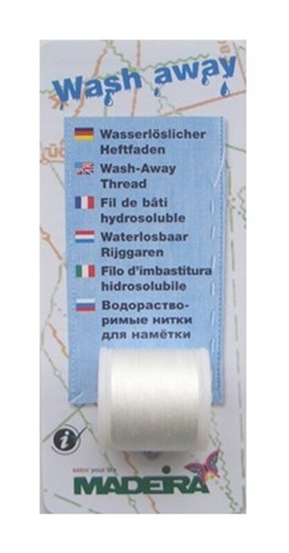 Vodou rozpustná stehovacia niť Wash Away (200 m) - Madeira je stehovacia niť rozpustná vodou či parou od žehličky. Vhodná na stehovanie zipsov, lemov, riasení, plisovania, vsadzovania rukávov a ďalšie.