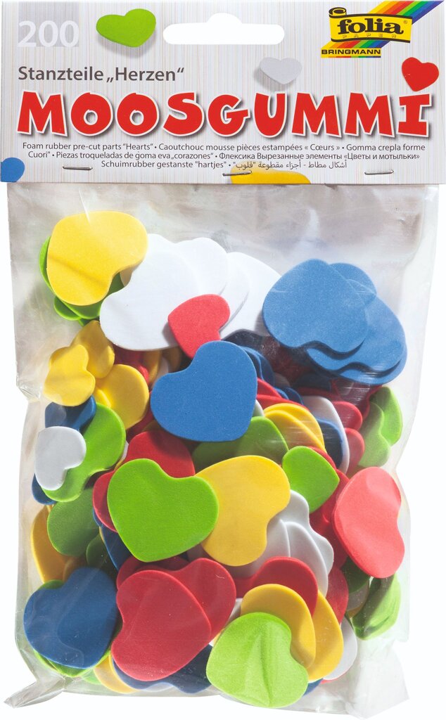 Pěnové výseky je balení výseků z pěnovky moosgummi ve tvaru srdce v různých barvách a velikostech.