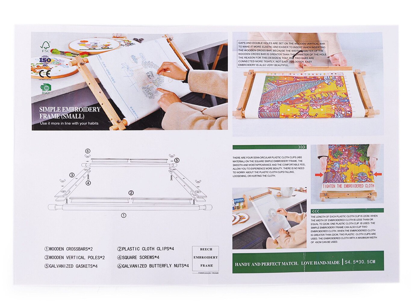 Nastaviteľný rám Vám uľahčí vyšívanie na veľkých plátnoch. Látku jednoducho vložíte do rámu a upevníte pomocou klipov. Do rámu môžete upevniť aj dve plátna. Rám Vám príde rozložený a podľa priloženého návodu ho jednoducho zložíte.