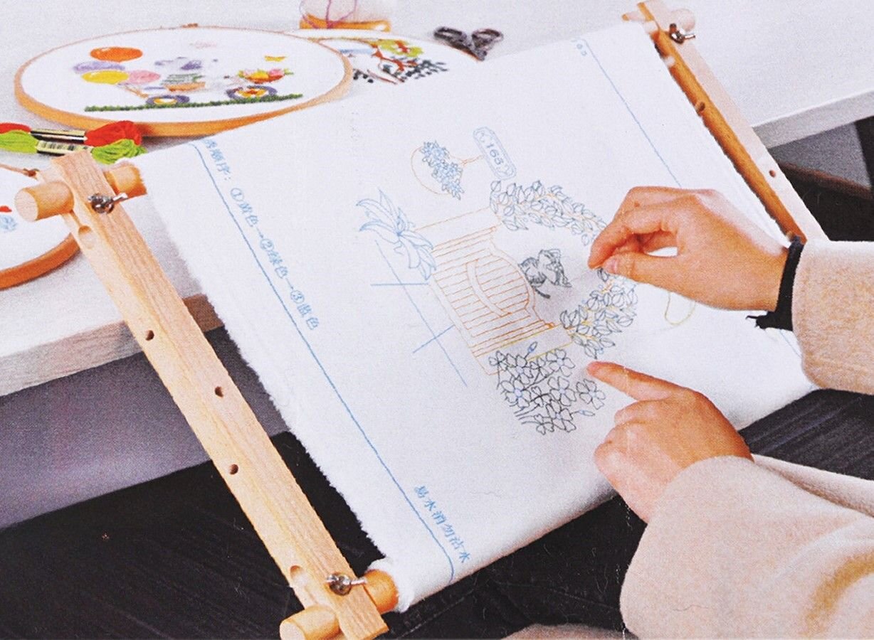 Nastaviteľný vyšívací rám pre ľahké vyšívanie na veľkých plátnoch. Rám z nelakovaného dreva, s ktorým bude vyšívanie jedna radosť.