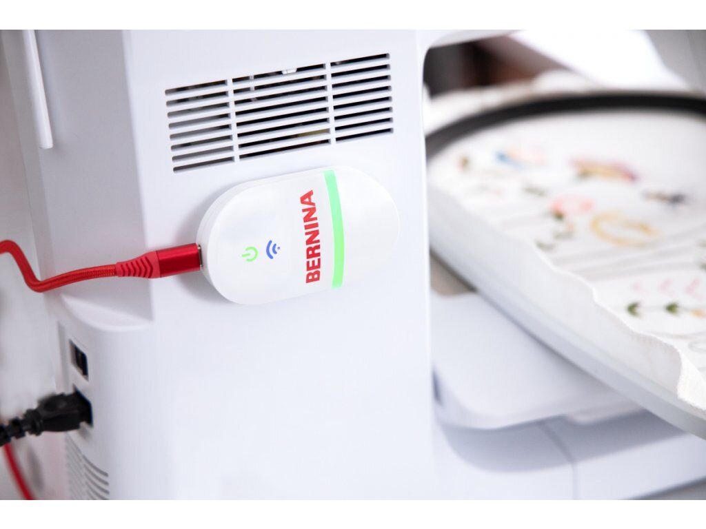 Vďaka funkcii WiFi môžete prenášať svoje vyšívacie návrhy do vyšívacieho stroja. Proces spustíte jednoducho jedným kliknutím, buď do vyšívacieho stroja BERNINA s integrovanou WiFi alebo pomocou zariadenia BERNINA WiFi Device, a to do takmer akéhokoľvek vyšívacieho stroja s USB portom