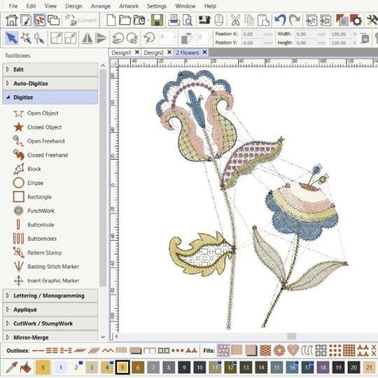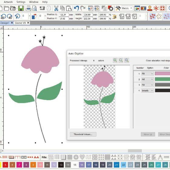 Pripravte si obrázok a preveďte ho na výšivkový vzor – všetko s využitím aktualizovaných nástrojov automatická digitalizácia a úplná digitalizácia. Stačí párkrát kliknúť a obrázok je pripravený na vyšitie. S úplnou digitalizáciou môžete vytvárať výšivkové vzory od samého začiatku a digitalizovať ich manuálne. To umožňuje ešte väčšiu flexibilitu hneď od začiatku.
