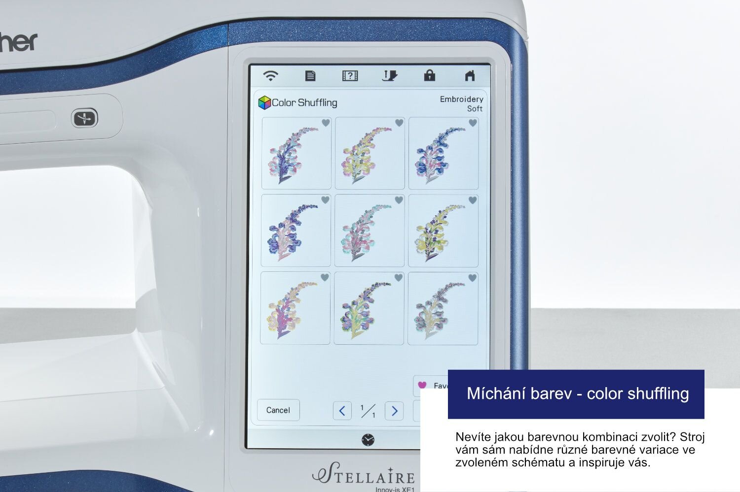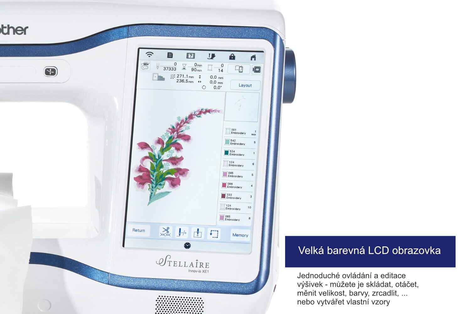 Vyšívací stroj Brother Innov-is Stellaire XE1 je nejnovějším vyšívacím strojem od značky Brother. Tento špičkový model umožňuje každé švadleně zrealizovat i velmi kreativní představy.