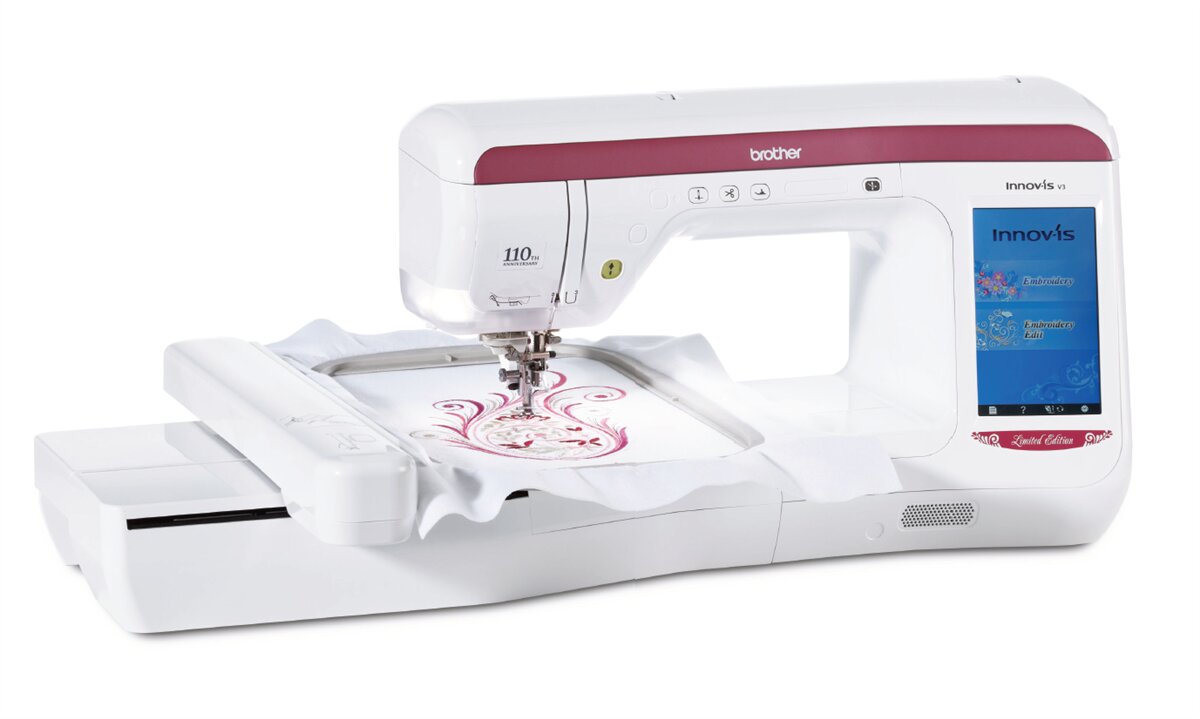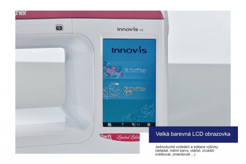 Vyšívací stroj Brother Innov V3 Limited Edition je lemitovaná edícia špičkového vyšívacieho stroja pre domácnosť. Ponúka prehľadný dotykový displej, automatický odstrih hornej aj spodnej nite, 227 motívov a extra veľkú vyšívaciu plochu 30