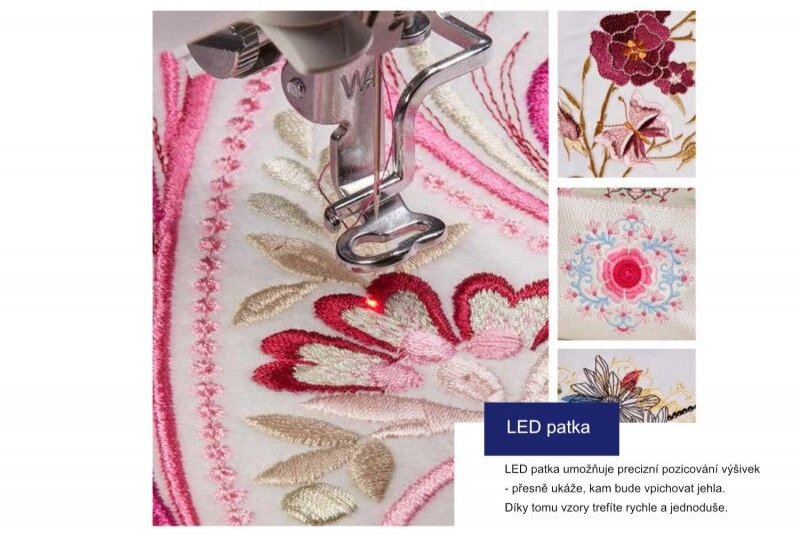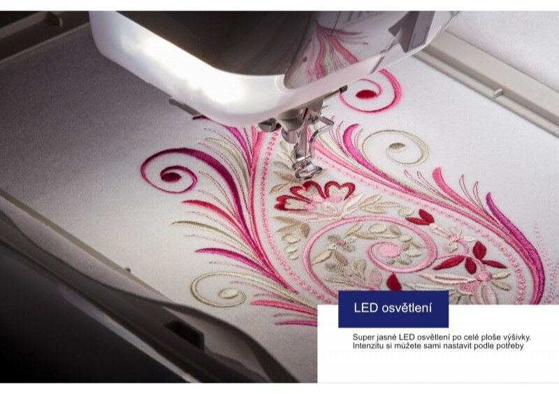 - Rýchlosť 1.050 stehov/min obdobná ako pri priemyselných vyšívacích strojoch