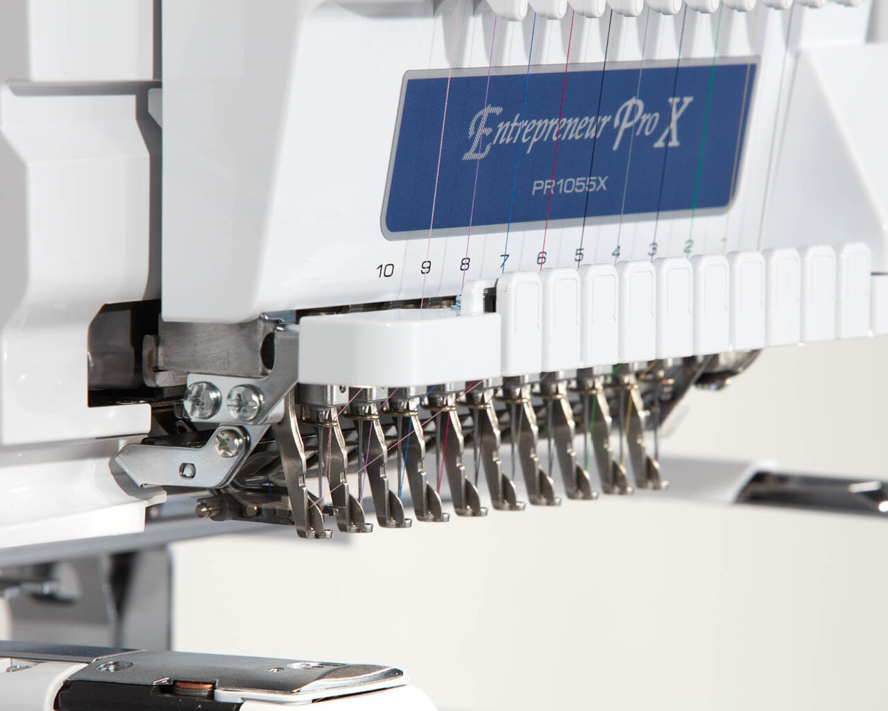 Vyšívací stroj Brother PR 1055 X je desaťihlový polopriemyselný vyšívací stroj, ktorého plocha má rozmer 360 x 200 mm. Jedná sa o špičkový vyšívací stroj s veľkým farebným LCD displejom, softvérom v českom jazyku a množstvom možností v