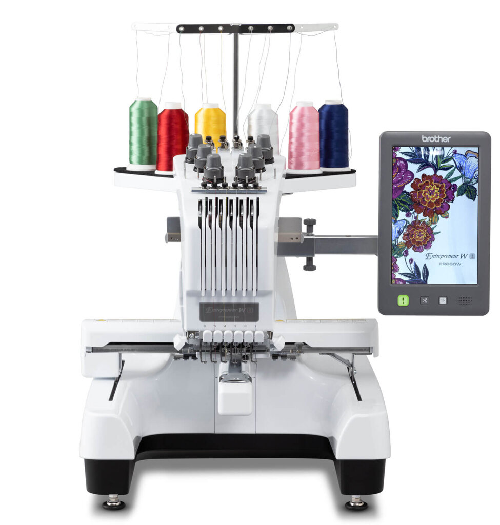 Dôležité vlastnosti: Tento polopriemyselný vyšívací stroj ponúka 228 vstavaných výšiviek, 50 typov fontov písma priamo v pamäti stroja, vrátane fontov v slovenčine, extra veľký farebný dotykový displej umožňujúci pohodlné ovládanie, automatický odstrih spodných aj horných nití aj unikátny automatický navliekač všetkých ihiel. Súčasťou vyšívacieho stroja Brother PR 680 W je 3x USB port a pripojená cez Wi-fi. Rýchlosť vyšívania 400 - 1000 stehov za minútu, u čiapok 600 stehov za minútu. Podporuje vstupné formáty výšiviek .pes, .phc a .dst.