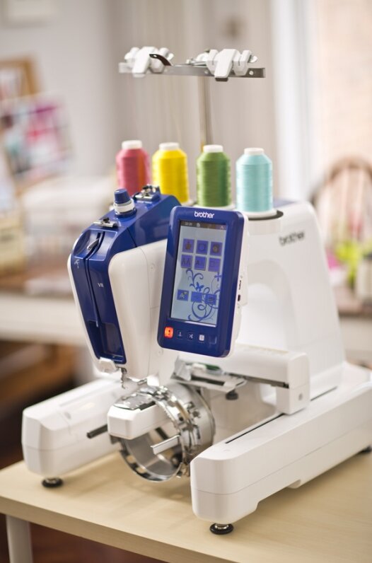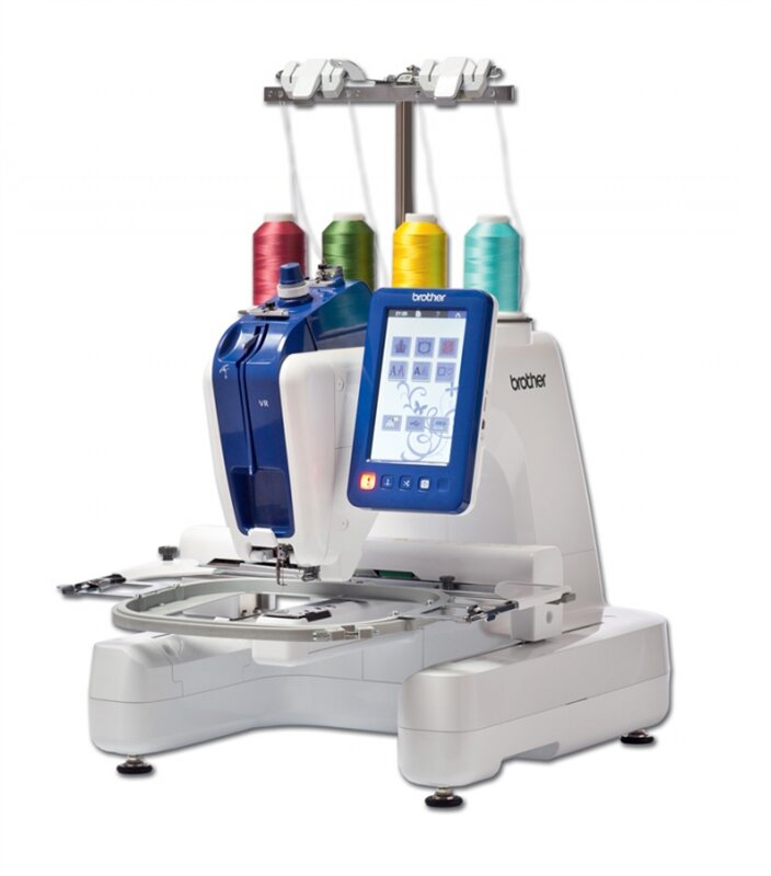Vyšívací stroj Brother VR je jednojehlový vyšívací stroj poloprůmyslového typu rozšířený o quiltovací funkce. S vyšívací plochou až 200 x 200 mm. LCD displej, úzké volné rameno, 405 vyšívacích vzorů, 20 fontů písma.