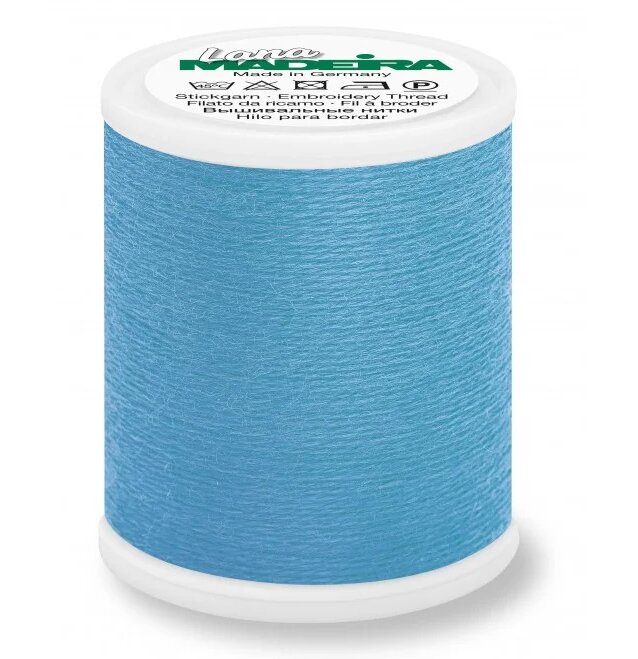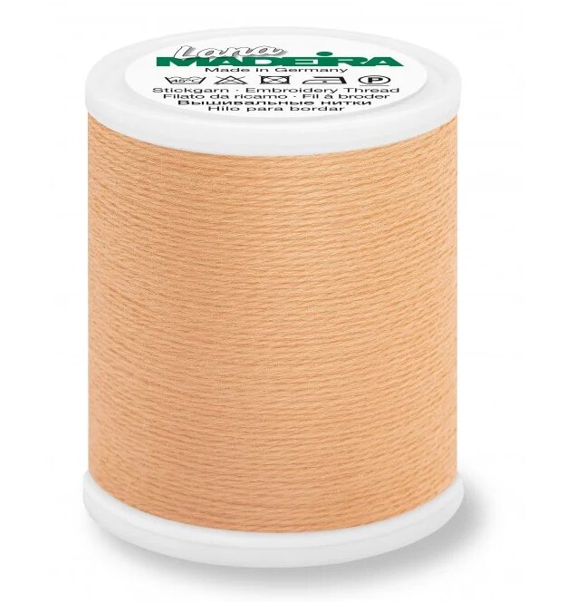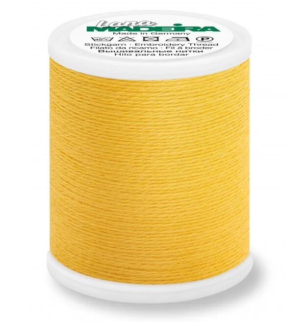 Vyšívacia niť Laná je silnejšia niť, ktorú je na vyšívacom stroji potrebné šiť ihlou na vlnu, ideálne o veľkosti 110/18. Vyšívacia niť Madeira Laná kombinujte so spodnou niťou Madeira Bobbinfil.